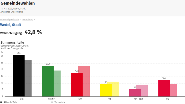 Wir sind unendlich glücklich über dieses Vertrauen, das uns entgegengebracht wurde. Nun heißt es anpacken und die Probleme Wedels lösen und hoffentlich auch viele Dinge voran bringen, die Wedel noch liebens- und lebenswerter macht.