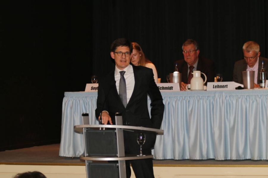 RELLINGEN. Der alte Kreisvorsitzende der CDU ist auch der neue: Dr. Ole Schröder wurde gestern auf dem CDU-Kreisparteitag im Rellinger Hof mit 97% in seinem Amt als Kreisvorsiteznder bestätigt. In seiner Rede ging der Bundestagsabgeordnete und Staatssekretär im Bundesinnenminsterium vor allem auf das Thema Asyl und Flüchtlinge ein und sparte nicht mit kritik an der immer noch schleppenden Weiterleitung der Hilfen des Bundes, die von der Kieler Landesregierung nur zögerlich und unvollständig an die Kommunen durchgereicht werden.