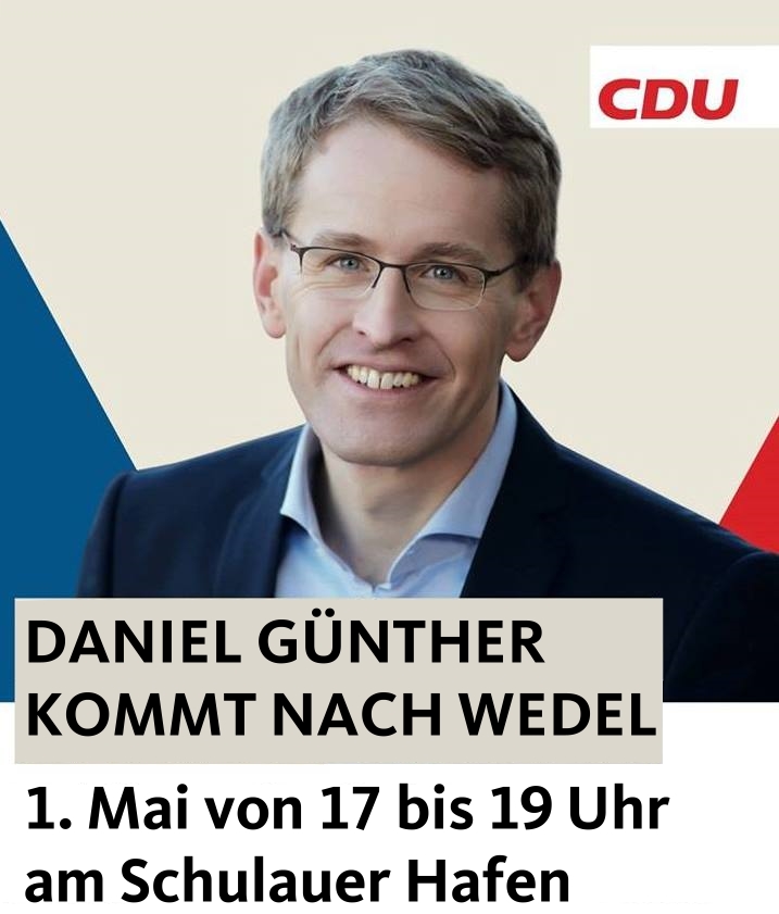 Mit unserem Ministerpräsidenten möchten wir am 1. Mai ab 17:00 Uhr am malerischen Schulauer Hafen mit den Bürgern ins Gespräch kommen und würden uns freuen, auch Sie und/oder Ihre Bekannten, Verwandten, Freunde und weitere Interessierte dort zu treffen.
